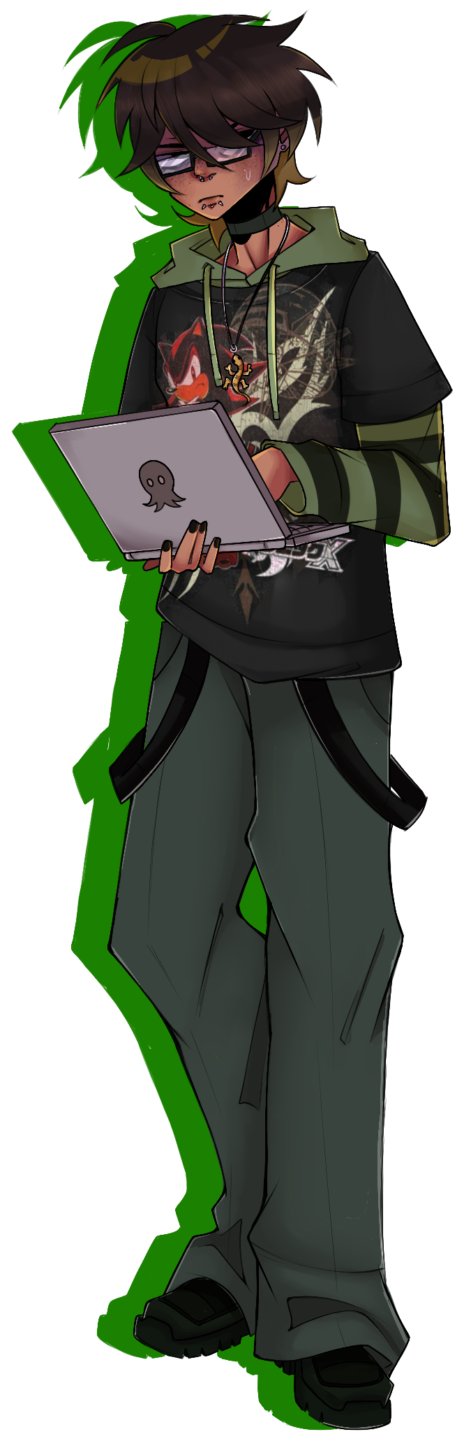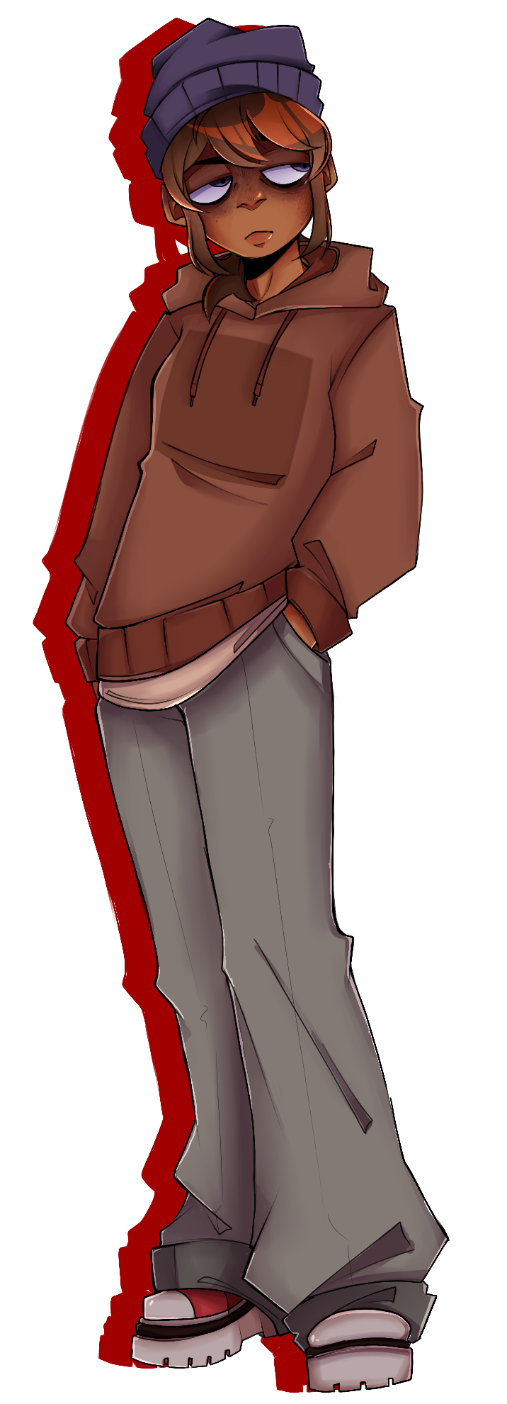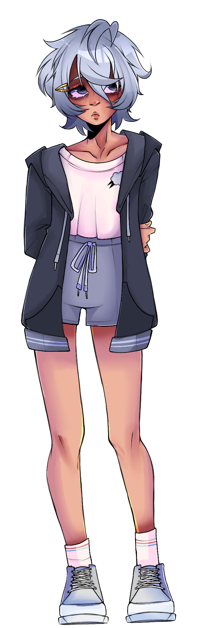 The drummer for the band 'The Eternals' and tank of their Persona team. Contrary to most, he experienced a natural Ego Death in the real world, causing him to awaken to his persona without ever having to step into headspace first.Partially mute and brooding, nothing gets him to emote. He currently lives with his sick mother as her sole caretaker, simmering with resentment towards the toxic workforce. Seeing death as a mercy, ironically he might be the most merciful of The ETERNALS... and the most loyal to Kuroshi. He believes without question that enacting karmic retribution against humanity is the only way to get them to listen and change--and if the world ends because of their actions, then that is what is meant to happen.He utilizes a drum hammer in battle and specializes in physical and shockwave skills.